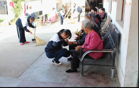 當志愿者們走到敬老院時,院長熱情的接待了大家,同時對同學們進行了感恩教育,并代表愛心老年公寓表達了對師生們的謝意和美好祝愿。隨后同學們投入到和老人的交流慰問中,有的同學拿起了掃把、抹布等等,熱心的幫助老人打掃衛(wèi)生或者摘菜;有的則為老人剪起了指甲、捶捶背,或者陪他們聊天,老人們一直在謝個不停,他們的眼中流露出最真誠的感謝。