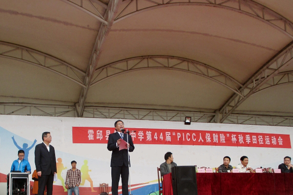 王萬(wàn)連與縣人保財(cái)險(xiǎn)公司代表致賀詞,預(yù)祝運(yùn)動(dòng)會(huì)圓滿(mǎn)成功。