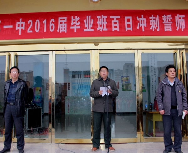 2月28日下午,霍邱一中在霍邱縣青少年活動(dòng)中心廣場(chǎng)舉行高三年級(jí)高考百日沖刺宣誓儀式。副校長(zhǎng)徐金忠主持儀式。