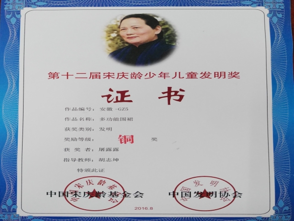 7月29日到8月2日,第十二屆宋慶齡少年兒童發(fā)明獎(jiǎng)?lì)C獎(jiǎng)典禮在貴陽市舉行。霍邱一中學(xué)生屠露露獲中國宋慶齡基金會(huì)、中國發(fā)明協(xié)會(huì)表彰。