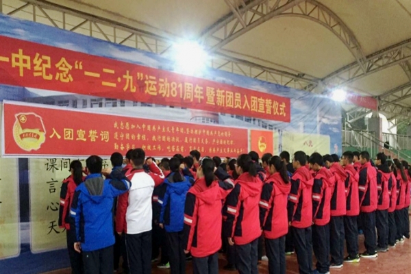 12月12日晨,霍邱一中紀(jì)念“一二九”運(yùn)動(dòng)爆發(fā)81周年暨新團(tuán)員入團(tuán)宣誓儀式在北校區(qū)田徑場舉行。