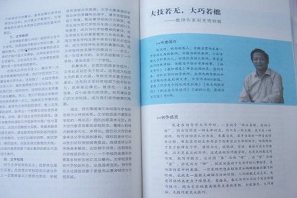 2016年初,中國當(dāng)代文學(xué)研究會(huì)校園文學(xué)委員會(huì)主辦的《文學(xué)校園》雜志刊出了霍邱一中教師作家趙克明特輯。