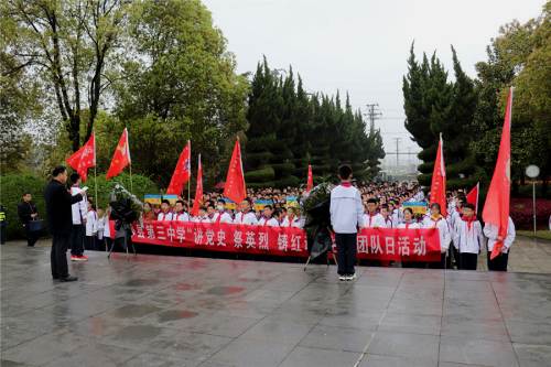 上午7時許,活動正式開始。在雄偉的烈士紀念碑前,全場高唱《義勇軍進行曲》,少先隊員代表緩步向前,敬獻花籃,整理挽聯(lián),所有的活動參與人員向為中華人民共和國的成立和建設事業(yè)獻身的烈士鞠躬并默哀。緊接著,全體少先隊員在紀念碑前,舉手握拳,重溫入隊誓言。