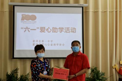 楊明生把30000元慰問金遞交給特校校長薛群,薛群代表特校師生員工,向霍邱縣愛心公益助學(xué)協(xié)會、霍邱一中和捐贈善款的愛心人士們表示感謝。
