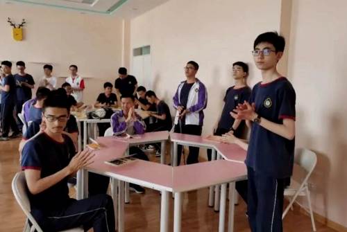 周桐(右三)返校后參加學(xué)校興趣小組討論