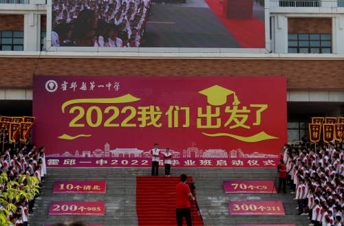 7月12日晨,霍邱一中在校圖書館前廣場(chǎng)舉行了新高三啟動(dòng)儀式。