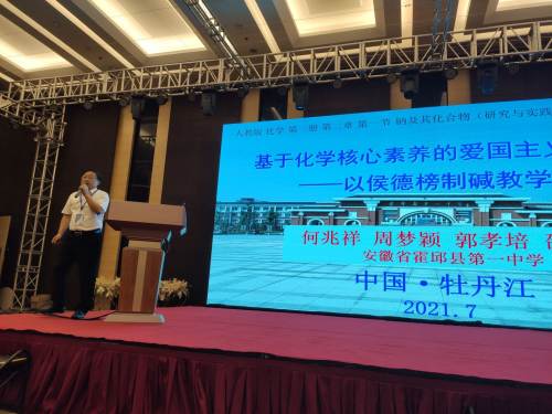 名師何兆祥分享的報告為《基于化學核心素養(yǎng)的愛國主義教學設計——以侯德榜制堿教學設計為例》,該報告從德育的角度提出了化學學科的育人價值,為教師備課指出了新的視角。