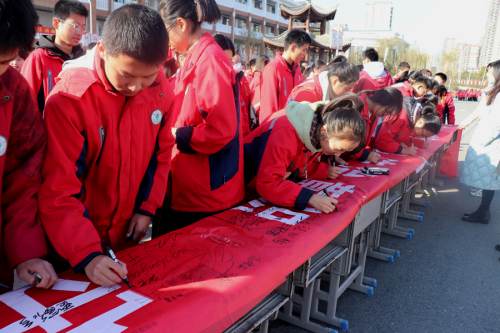 “交通安全,牢記心間”,在初中部王瑞光副校長的帶領(lǐng)下,上午大課間活動時(shí),各班班長、紀(jì)律委員和部分老師來到北門廣場參加集體簽名儀式。初中部團(tuán)委負(fù)責(zé)人向全體師生發(fā)出“安全出行倡議”,帶領(lǐng)師生在橫幅上簽名,承諾遵守交通規(guī)則,安全文明出行。