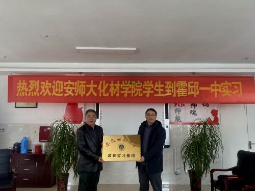 安師大化材學(xué)院黨委書(shū)記汪俊武代表安師大,把安師大實(shí)習(xí)基地銘牌交給了楊明生。