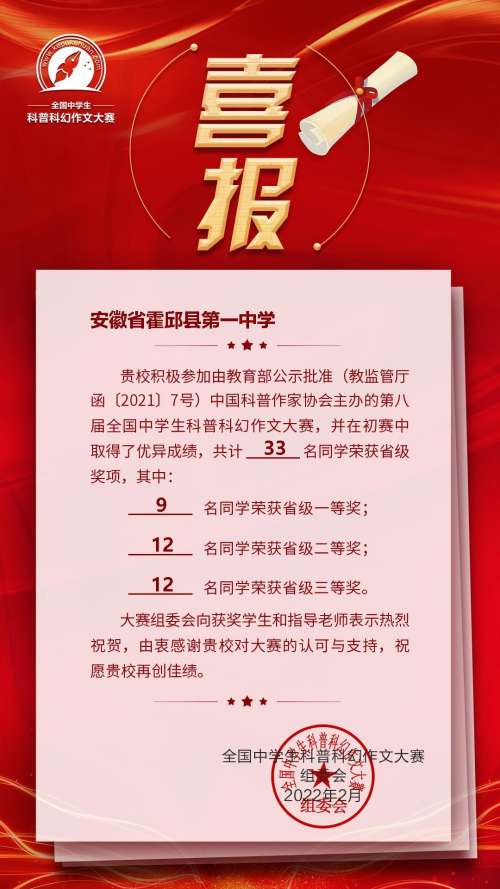 霍邱一中9名學(xué)生獲全國大賽決賽資格