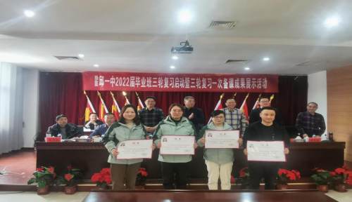 下午1:30,全體同志在今日晟會議室召開2022屆畢業(yè)班三輪復(fù)習(xí)啟動暨三輪復(fù)習(xí)一次備課成果展示活動大會。會議首先由年級部和教科室同志對“江南十校”聯(lián)考校內(nèi)與校際成績進(jìn)行分析,指出本屆聯(lián)考我校取得了較為理想的成績,希望全體老師再接再厲,沖刺最后七十多天,決勝2022年高考。會議接著進(jìn)行三輪復(fù)習(xí)一次備課成果展示。各學(xué)科組按照楊校長事前精心確定的展示人員名單依次上臺匯報(bào)展示,楊校長現(xiàn)場提問、點(diǎn)評。經(jīng)過評委們客觀、公正打分,最后語文科的杜燕老師、數(shù)學(xué)組的劉群老師、英語組舒曉敏老師、歷史組童志敏老師分獲第一、二、三名,現(xiàn)場頒發(fā)了獲獎證書。