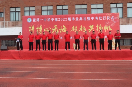 5月30日清晨,霍邱一中初中部(霍邱三中)2022屆“拼搏心無悔 超越共揚(yáng)帆”畢業(yè)典禮暨中考壯行儀式在學(xué)校操場隆重舉行。霍邱一中校長楊明生,副校長、初中部校長鄭家金攜初中部全體班子成員及七、八年級師生為即將參加2022屆中考的近兩千名九年級師生壯行。九年級部分家長代表應(yīng)邀參加了本次活動。壯行活動由初中部副校長謝運(yùn)連主持。