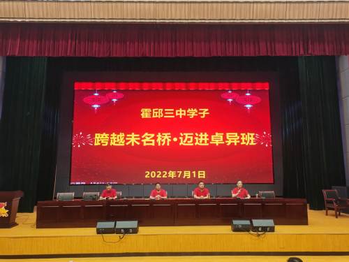 三年勤奮苦讀,今日喜獲成功。7月1日,霍邱一中初中部(霍邱三中)舉行了“跨越未名橋·邁進卓異班”畢業(yè)班學(xué)子告別母校儀式。霍邱一中副校長、初中部校長鄭家金攜初中部領(lǐng)導(dǎo)班子成員及九年級班主任,九十六名卓異班學(xué)子及其家長參加了本次活動。初中部王厚軍副校長主持儀式。