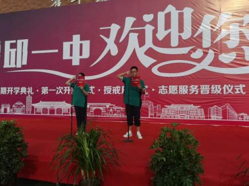 兩名高年級學(xué)生代表朗誦詩歌,歡迎高一新同學(xué)。隨后,高一教師代表邢玉峰老師做了表態(tài)發(fā)言。