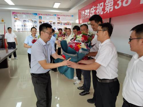 在霍邱一中行政樓,何超、宋效紅等與教師代表們親切握手,送上鮮花。他們?cè)儐?wèn)了老師們的工作和生活情況,代表縣委、縣政府感謝辛苦工作的老師們?yōu)榛羟窠逃聵I(yè)所做出的貢獻(xiàn),希望老師們保持教育工作激情,為打造一中品牌而努力奮斗。