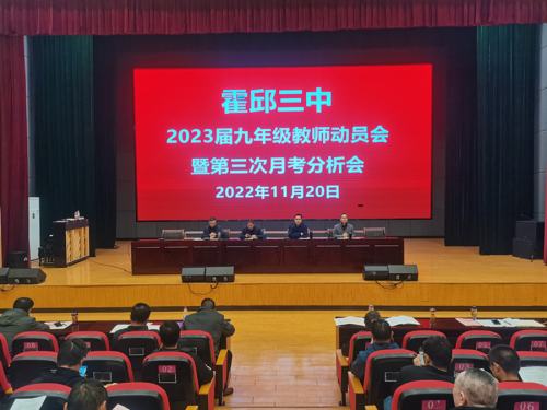 為切實抓好畢業(yè)班教育教學工作,強化畢業(yè)班教育教學管理,積極有效地開展備考復習工作,以高效的復習效果促進中考質量的穩(wěn)步提高,11月20日,霍邱一中初中部(霍邱三中)在校圓形報告廳開展了2023屆畢業(yè)班教師動員活動。初中部領導班子全體成員,九年級全體教師參加了本次活動。初中部政工副校長謝運連主持活動。