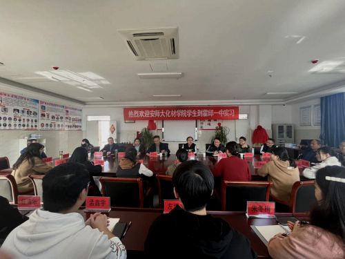 何兆祥督學分別介紹了參會人員,并安排專業(yè)指導老師與實習生認識。安師大程曉琴老師對同學們能夠來到霍邱一中實習表示十分的高興,感謝一中,希望同學們能學有所成。政教處余其權(quán)主任也對同學們的到來表示歡迎,并寄語同學們要把實習工作做到實處。