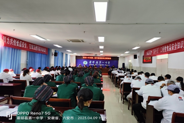 正值春季,天氣漸熱,流感等病毒多發(fā)時(shí)期,為了進(jìn)一步落實(shí)食品安全主體責(zé)任,規(guī)范食品安全管理人員行為,增強(qiáng)食品工作人員食品安全意識(shí),提高食品安全防護(hù)技能,嚴(yán)防食品安全事故的發(fā)生,按照上級(jí)主管部門和學(xué)校邀請(qǐng),4月9日,霍邱縣市監(jiān)局到我校開(kāi)展“食品安全‘百千萬(wàn)’工程暨食品安全知識(shí)進(jìn)校園”活動(dòng),本次活動(dòng)也是霍邱一中本部、初中部食品工作人員的食品安全培訓(xùn)活動(dòng)。