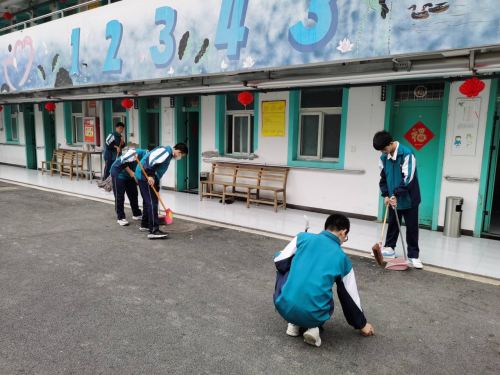 活動前,政教處組織高一年級37名優(yōu)秀學生代表手拿勞動工具,帶著為老人準備的水果,到學校門口前集合,準備開展志愿者服務活動。政教處主任余其權在講話中指出了活動的目的,要求全體同學從我做起,從身邊小事做起,尊老愛幼,關注他人,服務社會。