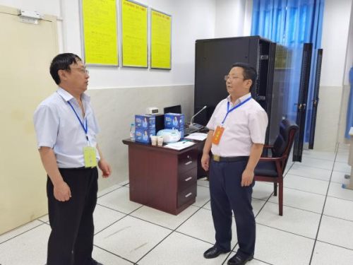 李煜、韋能武等檢查了考點(diǎn)及考場布置情況,通過視頻監(jiān)控系統(tǒng)察看了考場的考風(fēng)考紀(jì),詳細(xì)了解了考場設(shè)置、考生人數(shù)、后勤保障和應(yīng)急預(yù)案等情況,聽取了霍邱一中考點(diǎn)主考、校長楊明生,副主考、一中黨委副書記趙意如,辦公室負(fù)責(zé)人關(guān)于中考考務(wù)工作的匯報,對考務(wù)工作提出了要求。