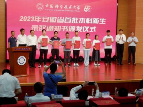 7月18日上午,中國科技大學(xué)2023年安徽省首批本科新生錄取通知書頒發(fā)儀式在合肥市舉行。合肥一中、安慶一中、霍邱一中、壽縣一中、岳西中學(xué)、科大附中等6所知名高中的校長應(yīng)邀參加了儀式。霍邱一中校長楊明生參加了此次儀式。