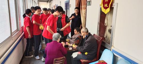 校團(tuán)委負(fù)責(zé)人對志愿者們做了紀(jì)律要求和流程安排,隨后學(xué)生志愿者們走進(jìn)房間,將準(zhǔn)備的慰問品送給養(yǎng)老院的老人們,并且與他們聊天,詢問他們的身體、生活狀況,叮囑他們?nèi)粘R嘧⒁馍眢w。