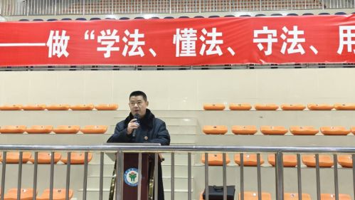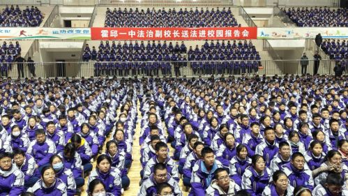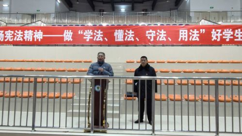 為進(jìn)一步增強(qiáng)學(xué)生的法律意識(shí),推動(dòng)校園法治教育工作再上新臺(tái)階,12月19日下午,霍邱一中在校體育館召開了法治副校長送法進(jìn)校園報(bào)告會(huì)。學(xué)校邀請(qǐng)了法治副校長——霍邱縣人民檢察院檢察長盧文峰作主講報(bào)告。校長楊明生,政教處、團(tuán)委和高一年級(jí)部負(fù)責(zé)人以及高一年級(jí)1600余名師生參加了報(bào)告會(huì)。報(bào)告會(huì)由楊明生主持。