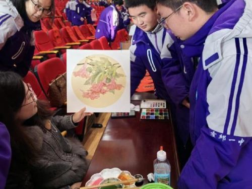書畫家們還與一中學(xué)子現(xiàn)場互動,氣氛熱烈,他們對學(xué)生書畫創(chuàng)作進行了耐心指導(dǎo)。