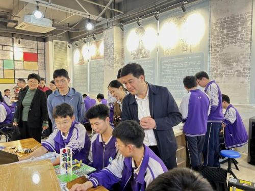 竇賢琨一行與羅偉偉、蘇原,劉潔心,彭昕、一中領導就校園建設、科技教育等議題進行了交流,對霍邱一中的科技教育、團建工作做了指導。(校辦、團委 審核:王德寶)
