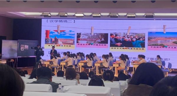 活動(dòng)上半場(chǎng),銅陵市第三中學(xué)楊奇老師和銅陵市第一中學(xué)姚振華老師、楊平老師分別進(jìn)行了教學(xué)展示。楊奇老師執(zhí)教的是《基層群眾自治制度:從金塔村看基層民主》,課堂中,楊奇老師堅(jiān)持一體化的育人思維,讓學(xué)生在親身實(shí)踐中去感受基層民主,貼近生活,貼近實(shí)際,實(shí)現(xiàn)思政小課堂與社會(huì)大課堂的有機(jī)結(jié)合。姚振華老師執(zhí)教的是《自主創(chuàng)業(yè) 公平競(jìng)爭(zhēng)》,課堂中,姚振華老師利用問(wèn)題鏈促進(jìn)學(xué)生思維進(jìn)階,增強(qiáng)學(xué)生在課堂中的主人翁意識(shí),從而激發(fā)學(xué)生的學(xué)科思維積極性。楊平老師執(zhí)教的是《始終堅(jiān)持以人民為中心》,課堂中,楊平老師圍繞“我是誰(shuí)”“為了誰(shuí)”“依靠誰(shuí)”三個(gè)議題將共產(chǎn)黨的初心使命具象化,不僅完成了課堂教學(xué)任務(wù),更將愛(ài)國(guó)的情懷升華于學(xué)生的心中。教學(xué)展示結(jié)束后,銅陵市教科院教研員江一新作《基于課堂觀察的成果提煉》報(bào)告。報(bào)告中,江一新強(qiáng)調(diào)要加強(qiáng)一線(xiàn)教師對(duì)課題科研的重視程度,以課堂觀察方式研究教師課堂提問(wèn)的有效性,并對(duì)三位老師的展示課作深刻點(diǎn)評(píng)。