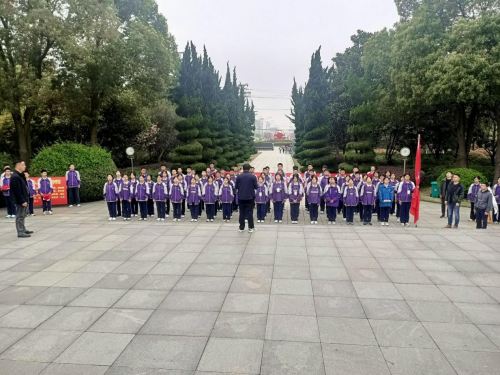 活動現(xiàn)場,政教處負責(zé)人主持祭掃活動并宣布活動開始,全體肅立,齊唱《中華人民共和國》國歌。