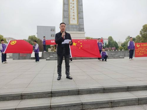 校領(lǐng)導(dǎo)陳濤校助講話,他表達了對先烈的緬懷之情,代表全體師生,表示:要繼承先烈的革命傳統(tǒng),發(fā)揚革命先烈的愛國主義精神,認真學(xué)習(xí),立足崗位,敬業(yè)奉獻。
