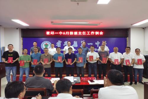 政教處負(fù)責(zé)人布置了六月份主題月活動,校領(lǐng)導(dǎo)為五月份最美黑板報獲獎班級頒發(fā)了獎牌。