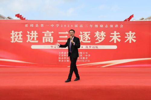 9月27日下午,霍邱一中在校毓秀廣場舉辦了2025屆高三勵志報告會。活動由霍邱一中主辦,武漢方可教育協(xié)辦。活動在全體師生大合唱《歌唱祖國》的歌聲中開始。