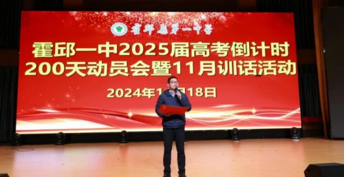 11月18日晚,霍邱一中在圖書館報告廳召開了2025屆畢業(yè)班高考倒計時200天動員會。校黨委書記王德寶,高三年級部負責人,全體高三班主任和學(xué)生參加了動員會。