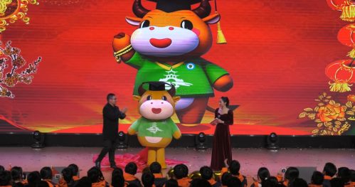 霍邱一中校長(zhǎng)許正田為晚會(huì)致辭。在熱情洋溢又溫暖感人的話語(yǔ)中,許正田對(duì)一中學(xué)子送出美好的祝福,勉勵(lì)他們做一個(gè)全面發(fā)展的新時(shí)代有為青年!對(duì)全體教職員工送上衷心的祝愿,愿老師們工作順利,身體健康,生活美滿。接著霍邱一中黨委書記王德寶為校園吉祥物揭幕,瞬間引起了全體師生的注目。當(dāng)呆萌可愛的“吾好牛”出現(xiàn)在眼前,歡聲笑語(yǔ)響徹全場(chǎng)。博士帽,勤耕牛,展望未來不服輸。愿吾輩發(fā)揚(yáng)孺子牛、擴(kuò)荒牛、老黃牛之精神,繼往開來,延續(xù)一中輝煌榮光。最后由五位學(xué)校領(lǐng)導(dǎo)依次上臺(tái)揭曉2024年“霍邱一中十大新聞綜述”,高度概括了在各級(jí)領(lǐng)導(dǎo)、各級(jí)教育主管部門的堅(jiān)強(qiáng)有力領(lǐng)導(dǎo)下,在廣大家長(zhǎng)及社會(huì)各界的大力支持下,在廣大師生奮力拼搏、艱苦努力下,不負(fù)韶華,砥礪前行,霍邱一中取得了一個(gè)又一個(gè)發(fā)展成果。(朱永兵 王剛 謝遠(yuǎn)強(qiáng) 一審:石常春 二審:余其權(quán) 三審:王德寶)