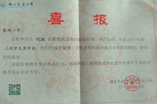 霍邱一中畢業(yè)生倪璇同...